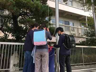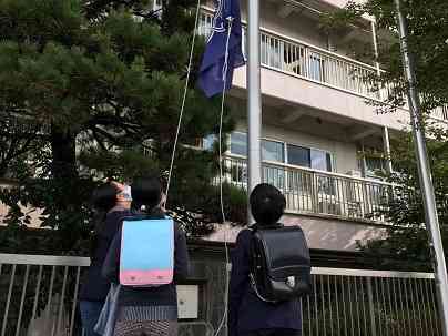 最高学年としての役目として、校旗を毎日掲揚する仕事があります。 今日も友達と協力しながら、頑張っています。